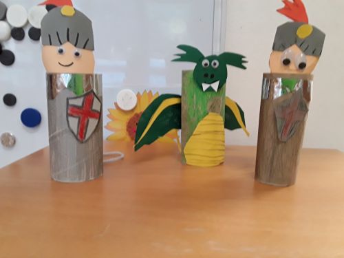 Im Anschluss ging es in die Kirche zur Kinderzeit=Kindergottesdienst. Thema war "Georg, der mutige Drachentöter".
